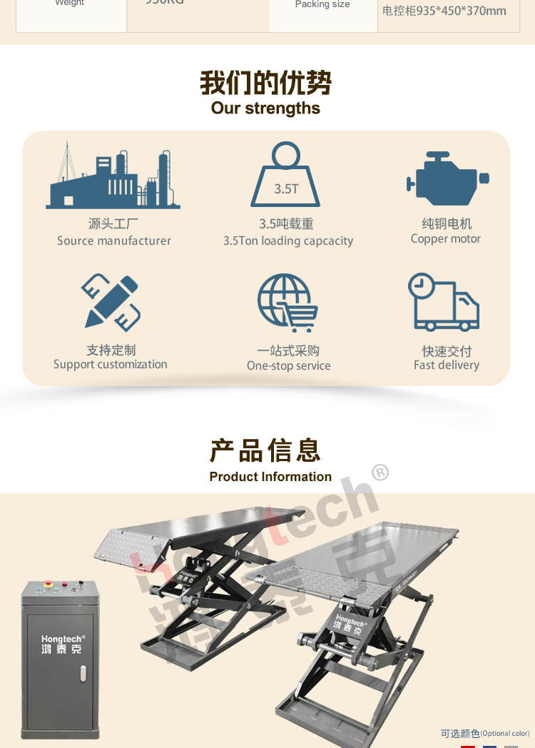 产品参数举升重量:4000KG平台长度:1550-2070mm 平台宽度:645mm举升高度:1800mm最小落地高度:230mm举升时间:50-60S工作气压:0.6-0.8Mpa电机功率:2.2KW 电压:220/380V重量/包装举升机 1660*660*340 &nb